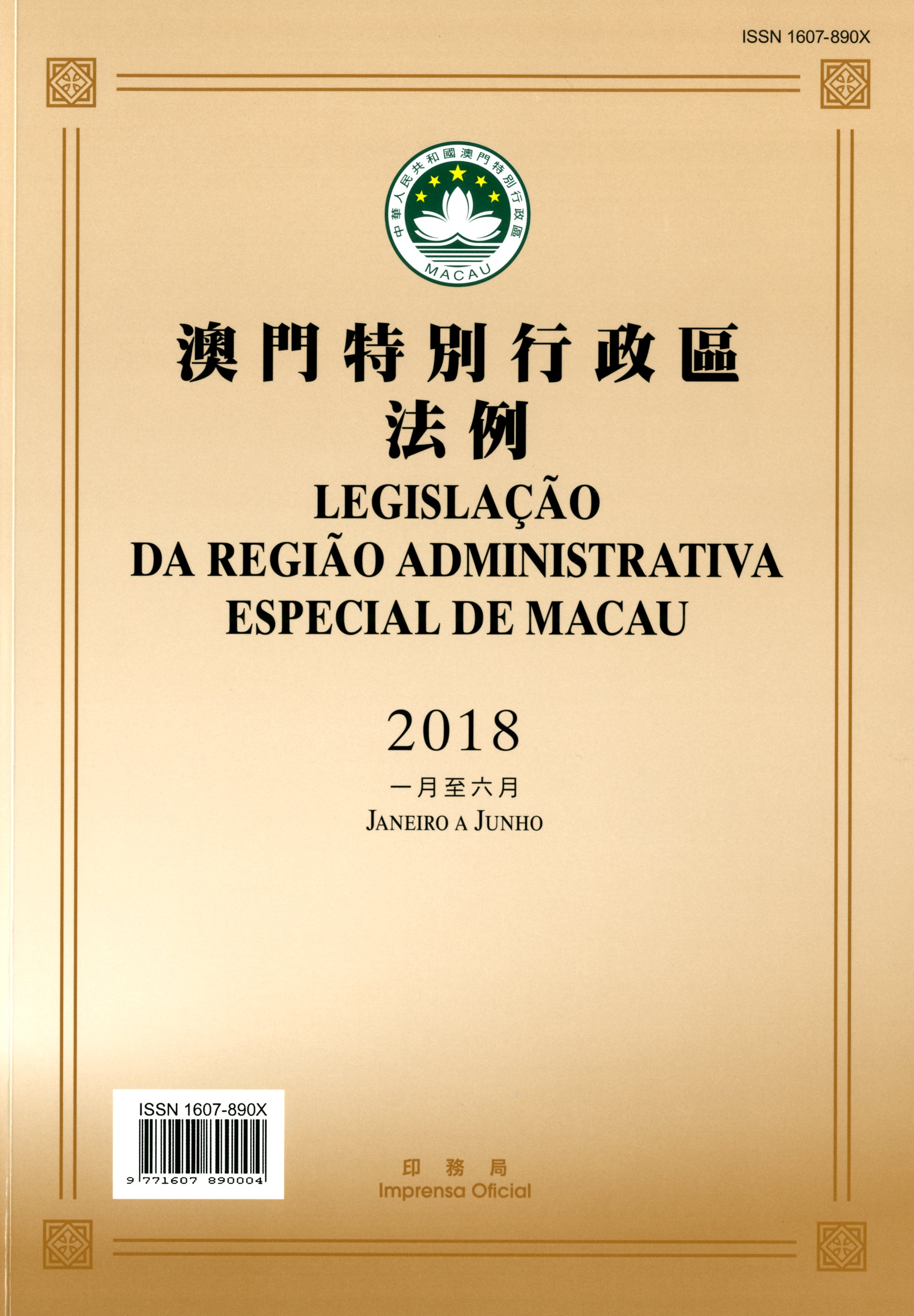 Legislação da Região Administrativa Especial de Macau (Janeiro a Junho de 2018)
