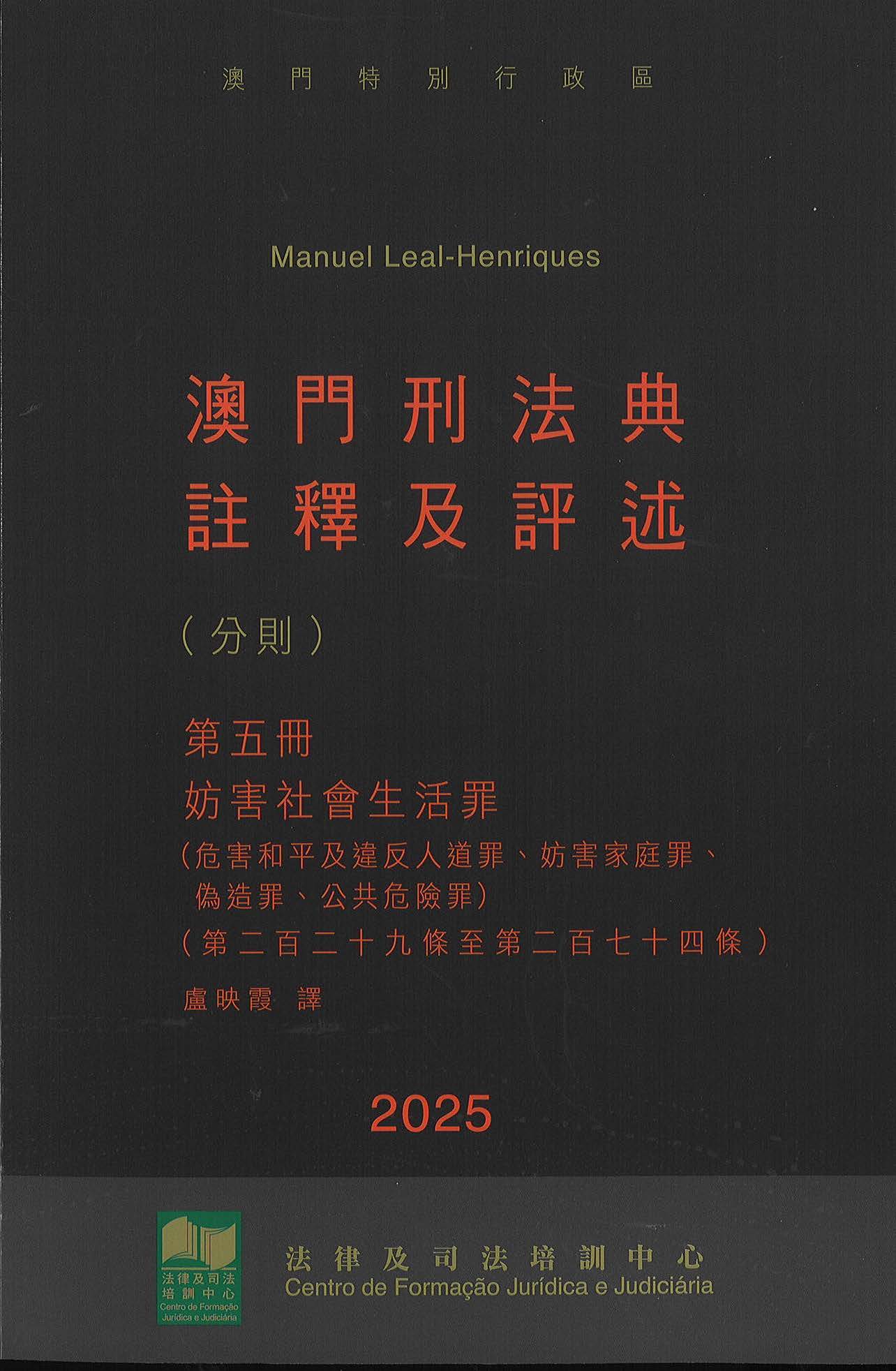 澳門刑法典註釋及評述 -- 第 五冊(中文版)